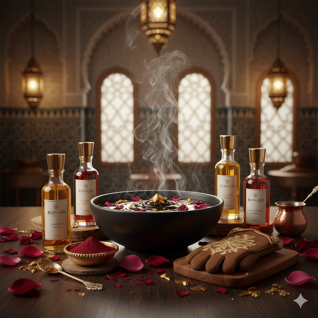انغمسي في عالم من الرفاهية المطلقة مع تجربة الحمام المغربي الملكي، المصممة خصيصاً لتدليل حواسك وتغذية بشرتك من الرأس حتى أخمص القدمين. هذه ليست مجرد جلسة حمام، بل هي رحلة متكاملة من النقاء، التجديد، والترطيب العميق، باستخدام أجود المكونات الطبيعية المغربية الفاخرة مثل العكر الفاسي، الورد الدمشقي، وزيت الأرغان الذهبي، مع لمسات إضافية من العناية الفائقة. استعدي لتتألقي ببشرة حريرية، متوهجة، وشعور ملكي لا يُنسى.